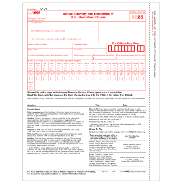 Printable and fillable form 1096.